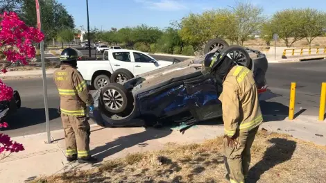 ¡Sólo fue el susto! Choque volcamiento en Quintero Arce