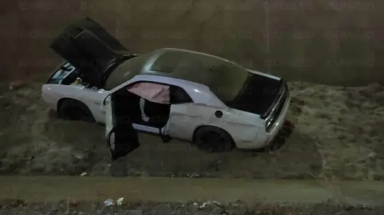 Producto de circular a exceso de velocidad, un vehículo deportivo, de color blanco, cayó al canal pluvial ubicado al poniente de Hermosillo.