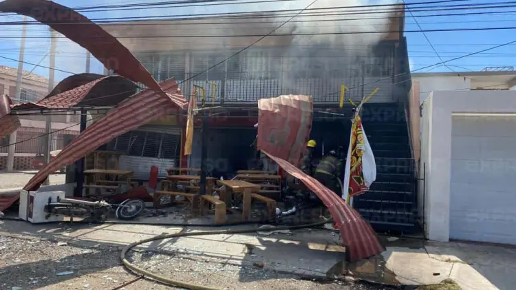 Un desperfecto en una manguera al intentar llenar un tanque estacionario provocó una explosión en un establecimiento de comida, causando daños en la infraestructura del lugar y sin que se registraran lesionados, en hechos ocurridos en la colonia Residencial de Anza.