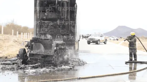 Cabina de trailer se convierte en cenizas en carretera Hermosillo-Guaymas