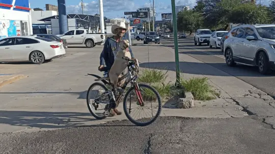 La espera de la luz verde se vuelve más amena al presenciar las acrobacias en bicicleta que realiza la perrita 'Mesera', en algunos semáforos ubicados sobre el bulevar Morelos.