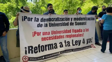 El Sindicato de Trabajadores Académicos de la Universidad de Sonora realizó un plantón en la decimocuarta mesa negociadora de revisión salarial, a falta de una semana para la votación de estallamiento de huelga.