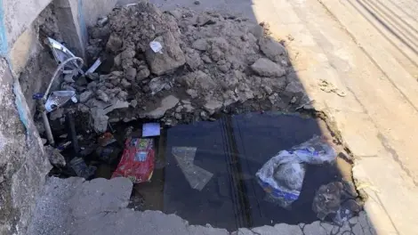 Dentro de la zanja se encuentra papel, escombros, tierra, botellas, bolsas de plástico y lodo a su alrededor. Se desconoce el tiempo que tiene en estado de descuido o si las autoridades pertinentes han acudido a observar el problema.