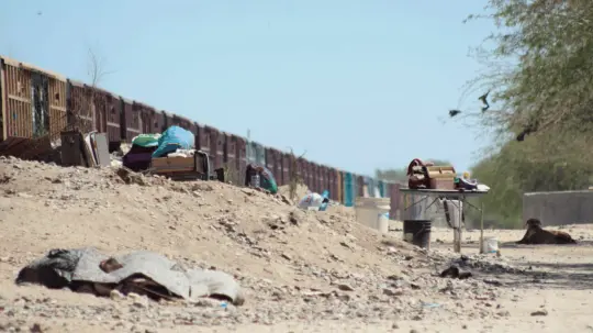 Alrededor de 70 personas habitan en casas improvisadas en un camellón de la calle Salamanca, justo al lado de las vías del tren, en la colonia Las Riberas, cerca de Las Amapolas. Ahí, formaron una comunidad unida por la esperanza.