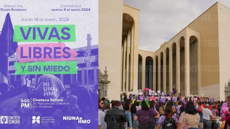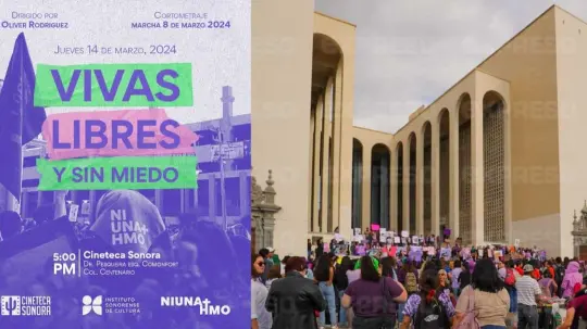 El colectivo feminista 'Ni Una Más Hermosillo' invita a formar parte del estreno gratuito del cortometraje filmado durante la marcha del Día Internacional de la Mujer, 'Vivas Libres y Sin Miedo' en la Cineteca Sonora este jueves 14 de marzo a las 17:00 horas.