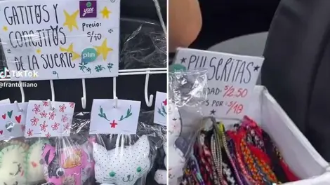 Los productos pueden funcionar como un obsequio. Hay desde peluches de gatos y conejos hasta pulseras, esto llamó la atención de la joven que decidió filmar el ‘stand’ que armó el hombre.