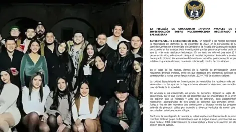 La Fiscalía de Guanajuato informó que no fueron 12, sino 11 los muertos derivados de la masacre en la posada de la exhacienda de San José del Carmen, en el municipio de Salvatierra, Guanajuato.