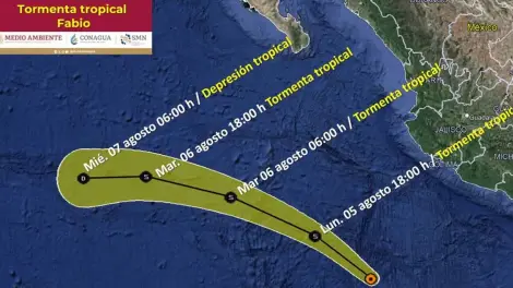 El Servicio Meteorológico Nacional (SMN) informó sobre la formación de la Tormenta Tropical Fabio. Esta tormenta se desarrolló al sur-suroeste de Colima y Jalisco.