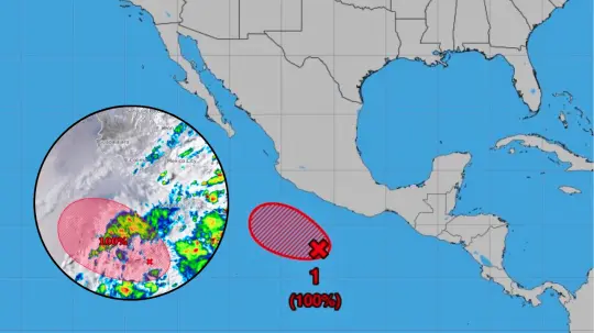 La Comisión Nacional del Agua (Conagua) y el Servicio Meteorológico Nacional (SMN) confirmaron que el sistema de baja presión frente a las costas del Pacífico mexicano mantiene un cien por ciento de probabilidad de desarrollo ciclónico y podría evolucionar en las próximas horas a depresión tropical o tormenta tropical Alvin, el primer ciclón con nombre de la temporada 2025 en el Océano Pacífico.