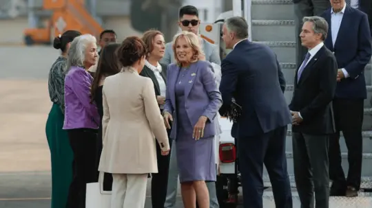La primera dama viajó junto a Antony Blinken, secretario de Estado de los Estados Unidos y John Kerry, enviado presidencial especial de los Estados Unidos para el Clima.