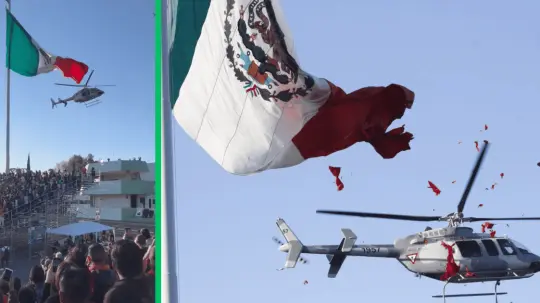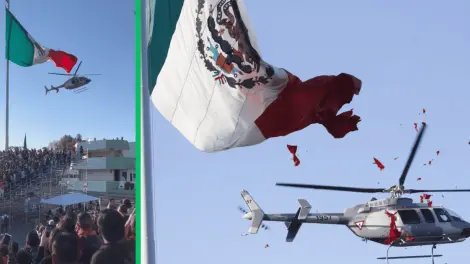 Un helicóptero de la Secretaría de la Defensa Nacional (Sedena) cortó parte de la Bandera Monumental durante un evento que tuvo lugar el pasado sábado 3 de febrero en el Campo Militar 1-A de Naucalpan de Juárez en el Estado de México.