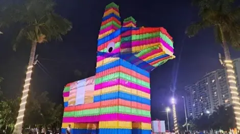 La tormenta de este 10 de diciembre en Cancún, Quintana Roo, colapsó una escultura urbana de 'Burrito Sabanero' que se había colocado en el Malecón Tajamar. Videos compartidos en redes sociales muestran el momento en el que la colorida estructura se derrumbó.