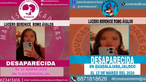 La presidenta fundadora de Madres Buscadoras de Sonora y de México, Ceci Flores, reportó en su cuenta de X que Lucero Berenice Romo Ávalos, fundadora de los Jóvenes buscadores se encuentra desaparecida desde ayer martes.