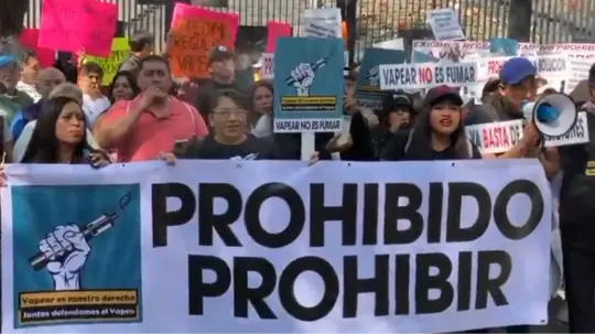 Comerciantes de vapeadores y organizaciones provapeo convocaron a manifestarse al exterior del Senado de la República bajo el lema: '¡Prohibido prohibir!', argumentando que esta medida fomentará el mercado negro y criminalizará a los consumidores.