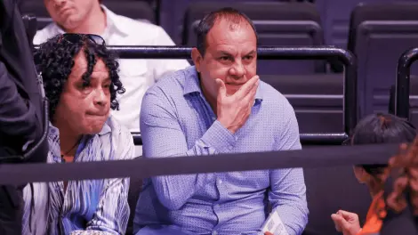 El exfutbolista y exgobernador de Morelos vistió camisa azul y pantalón de mezclilla y se ubicó en las primeras filas del evento de artes marciales mixtas.