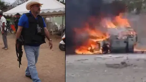 En las imágenes se muestran a habitantes de la zona tratando de apagar con agua el vehículo en llamas en donde se encontraba el exlíder de las autodefensas.