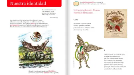 En 'Múltiples lenguajes: trazos y palabras', uno de los nuevos libros de texto gratuitos y el que corresponde al primer grado de primaria, se incluye un apartado especial dedicado al Himno Nacional ("Nuestra identidad", p. 90) en el que se aborda el sentimiento de pertenencia a través de los Símbolos Patrios.