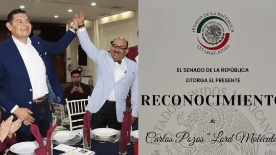 La distinción, firmada por el senador poblano Alejandro Armenta, fue entregada por su destacada trayectoria de Carlos Pozos en el ámbito del periodismo, según se lee en la distinción. A través de sus redes sociales, 'Lord Molécula' expresó su agradecimiento al Senado por este honor.