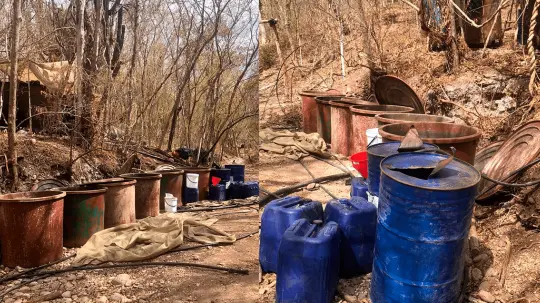 Detalló que, en los recorridos de las autoridades por estos poblados, se logró asegurar: 15 reactores, 32 condensadores y 20 quemadores que formaban parte de los 4 laboratorios.