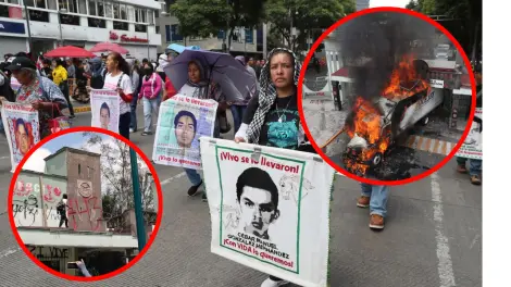 A 11 años de la desaparición de los 43 normalistas, manifestantes queman camión frente a instalaciones militares en Ciudad de México