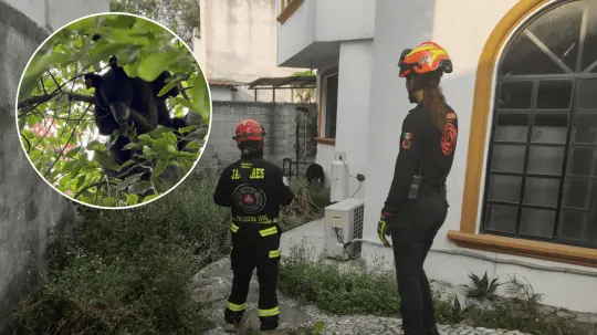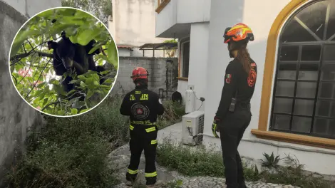 La presencia de un oso en el patio de una vivienda movilizó a diferentes cuerpos de auxilio en el municipio de Santa Catarina en Nuevo León.
