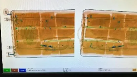 Las dos maletas contaban con un doble fondo, en los que se encontraron 10 y 9 paquetes de diversos pesos y tamaños, respectivamente, con un polvo blanco con características similares a las de la cocaína, con un peso total de 17.23 kilogramos, a las que se les aplicaron las pruebas de espectrometría de masas con equipo especializado (MicroPhazir) para la detección de sustancias químicas, obteniendo resultados positivos a cocaína.