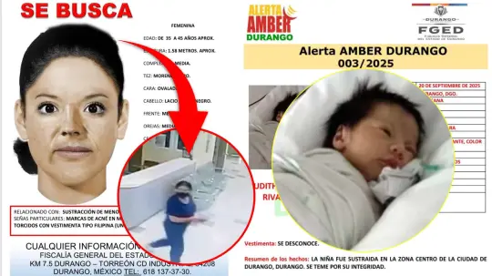 Una bebé de apenas un mes de nacida fue sustraída del Hospital Materno Infantil, administrado por la Secretaría de Salud de Durango, en un hecho que ha generado conmoción en la ciudad y la activación de la Alerta Amber.