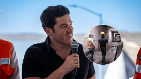 Samuel García, gobernador de Nuevo León, junto con personal técnico de Agua y Drenaje de Monterrey, realizaron una inspección en la Presa Libertad.