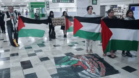 Se manifiestan mexicanos proPalestina en el Aeropuerto de Cuidad de México