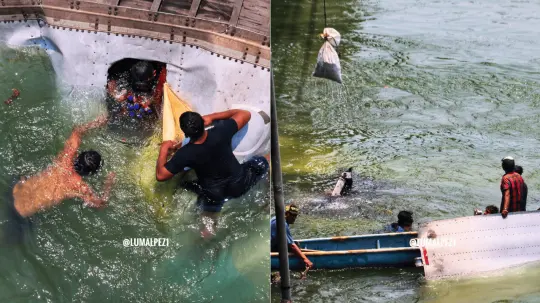 En videos difundidos en redes sociales se observa cómo hombres se sumergen para sacar lo que pueden, mientras otros los esperan en embarcaciones improvisadas. Ninguna autoridad impidió la rapiña, a pesar de lo peligroso de las maniobras y del bloqueo que el incidente provocó en la vía por varias horas.