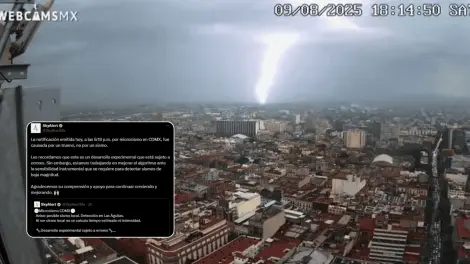 Alrededor de las 18:00 horas, cámaras de la Torre Latinoamericana captaron el momento en que un potente rayo impactó contra el suelo, generando un destello que iluminó el cielo capitalino. La fuerza del trueno fue tal que provocó vibraciones detectadas por sismógrafos y activó de forma preventiva la aplicación SkyAlert.