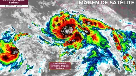 Durante la madrugada de este domingo, a las 03:00 horas (tiempo del centro de México), se formó la tormenta tropical Barbara en el océano Pacífico, al sur de las costas de Guerrero. El sistema se localizó aproximadamente a 290 kilómetros al sur-suroeste de Zihuatanejo, Guerrero, con vientos máximos sostenidos de 75 kilómetros por hora, rachas de hasta 95 km/h y un desplazamiento hacia el oeste-noroeste a 19 km/h.
