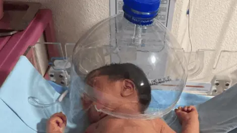 El bebé presentó un cuadro de estrés respiratorio leve tras nacer por parto normal, por lo que la enfermera y el pediatra ingeniaron este método ante la falta del equipo adecuado.