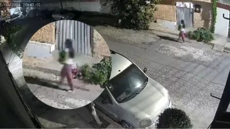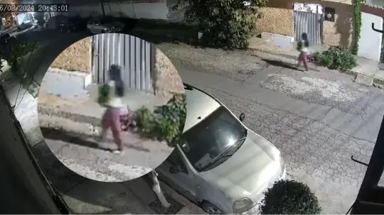 Según las imágenes, los hechos ocurrieron minutos antes de la medianoche del lunes 26 de agosto, cuando se observa que una fémina caminaba sobre la calle Japón.
