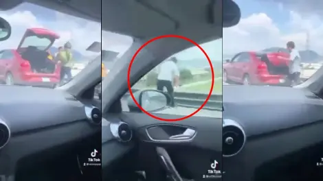 Un video captado por un automovilista muestra cómo un repartidor es arrojado de un puente vehicular tras una riña con un conductor y una acompañante, esto en Cuautitlán Izcalli, Estado de México.