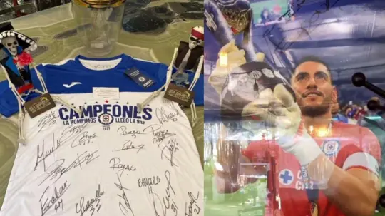 Destaca una imagen del arquero José de Jesús Corona con el torneo que conquistó el equipo celeste en Clausura 2021. También se pueden observar camisetas autografiadas con exjugadores como Christian "Chaco" Giménez, incluso, una de Ronaldinho cuando formó parte de los Gallos Blancos del Querétaro.