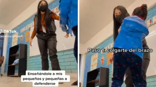 A través de redes sociales, una maestra se hizo viral, luego de mostrar los pasos de defensa que les enseña a sus pequeños alumnos para evitar un posible caso de secuestro.