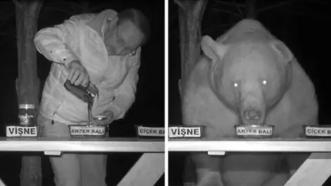 Por este motivo, Ibrahim Sedef decidió aprovecharse de la situación y convertir a los osos en catadores de miel. Frente a una cámara con visión nocturna colocó una mesa con distintos tipos de miel para ver cuál le gustaba más a los osos.