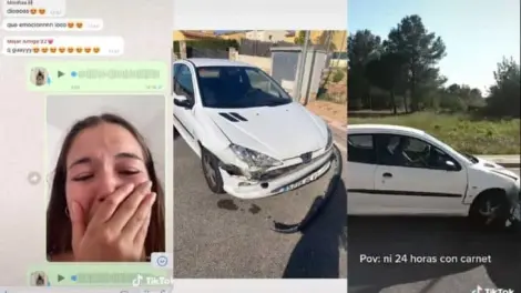 En otro video, se puede ver el momento exacto en el que la joven choca contra el auto de su hermano, con la descripción "POV (abreviación de punto de vista en inglés): ni 24 horas con carnet".