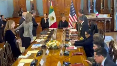 Al ingresar al lugar, López Obrador saludó de mano a todos los funcionarios norteamericanos, incluido el Secretario de Estado, Antony Blinken. Luego, con la ayuda de una intérprete, intercambió algunos comentarios.