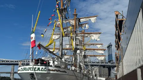 La Secretaría de Marina informó que este viernes 6 de junio el Buque Escuela Cuauhtémoc (BE-01) fue trasladado al astillero de GMD de Brooklyn, NY.