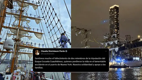 El alcalde de Nueva York y la presidenta de México confirmaron el fallecimiento de dos marinos tras el accidente del velero Cuauhtémoc.
