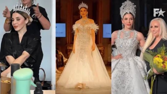La esposa de 'El Chapo' lució un vestido de novia de la colección primavera/verano 2025 y desfiló en el Palacio Serbelloni, lugar emblemático donde vivió Napoleón.