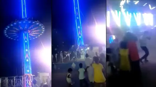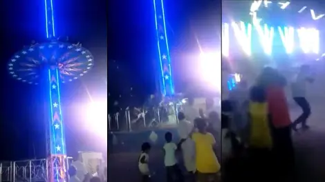 El periodista Nikhil Choudhary tuiteó un video del momento en el que el juego, una rueda giratoria, se desploma. Al impactar en el suelo se ve a varias personas salir golpeadas, mientras quienes esperaban en los alrededores salen corriendo.