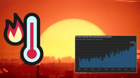 El pasado mes de julio fue el tercero más caluroso jamás registrado a nivel global, con una temperatura media del aire en superficie de 16.68 grados Celsius, 0.45 °C por encima del promedio para ese mes entre 1991 y 2020, de acuerdo con el boletín mensual del Servicio de Cambio Climático de Copernicus (C3S).