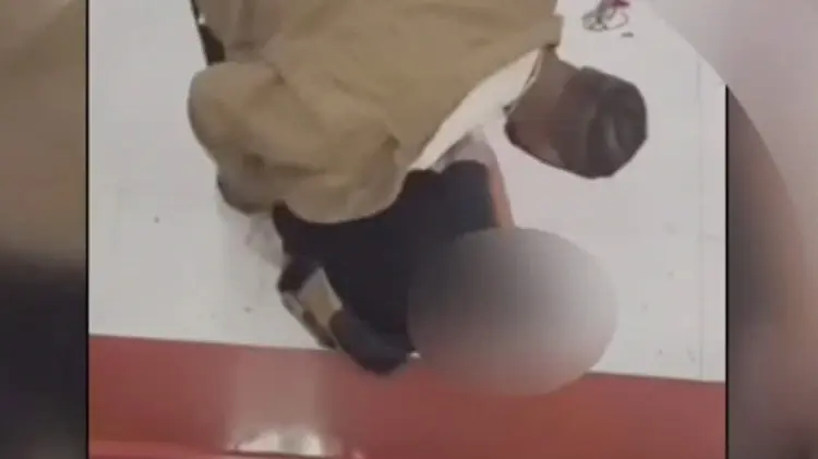 Un maestro sustituto fue arrestado después de que se difundiera un video en redes sociales mostrando cómo sometía y golpeaba a un estudiante en un pasillo de la cafetería de Valley High School, en el Condado de Clark, al este de Las Vegas.