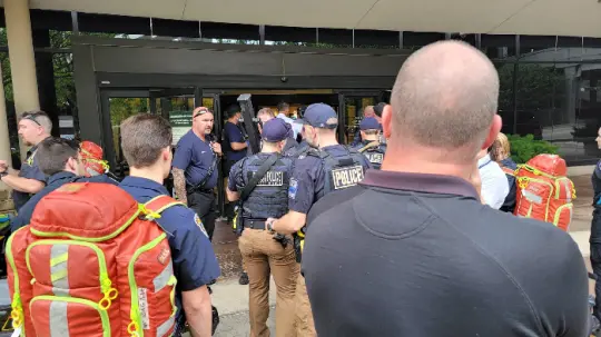 Tras los disparos las autoridades solicitaron al personal médico, pacientes y familiares refugiarse en la Memorial High School al oeste de LaFortune Park.