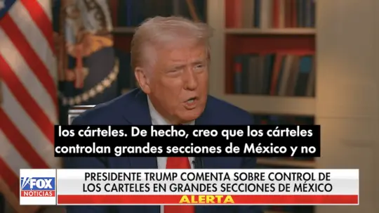 "Estamos trabajando con México. Creo que los cárteles controlan grandes sectores del país y no quiero decir eso porque me llevo muy bien con su presidenta", expresó Trump en la entrevista. Agregó que Sheinbaum "es una mujer excelente" y sostuvo que "la relación es muy buena".