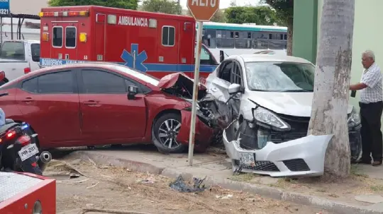 Cuantiosos daños materiales dejó como saldo un aparatoso choque entre dos vehículos, provocado por la omisión de un alto y la imprudencia de un joven conductor durante la mañana de este miércoles, en la colonia Juárez, en Navojoa.