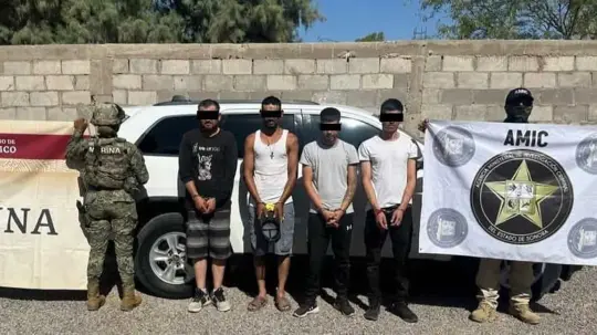 La Fiscalía General de Justicia del Estado de Sonora (FGJES) informó sobre el aseguramiento de cuatro personas y un vehículo con reporte de robo durante un operativo realizado el 17 de abril en colaboración con la Agencia Ministerial de Investigación Criminal (AMIC) y la Secretaría de Marina-Armada de México (SEMAR).